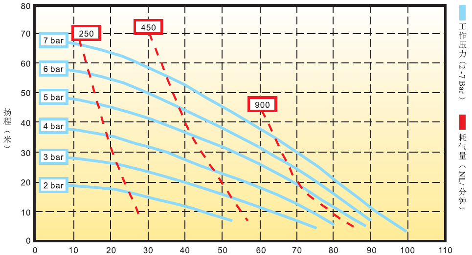 流量曲线图(流量是依据水在20℃及表列扬程下所测得)